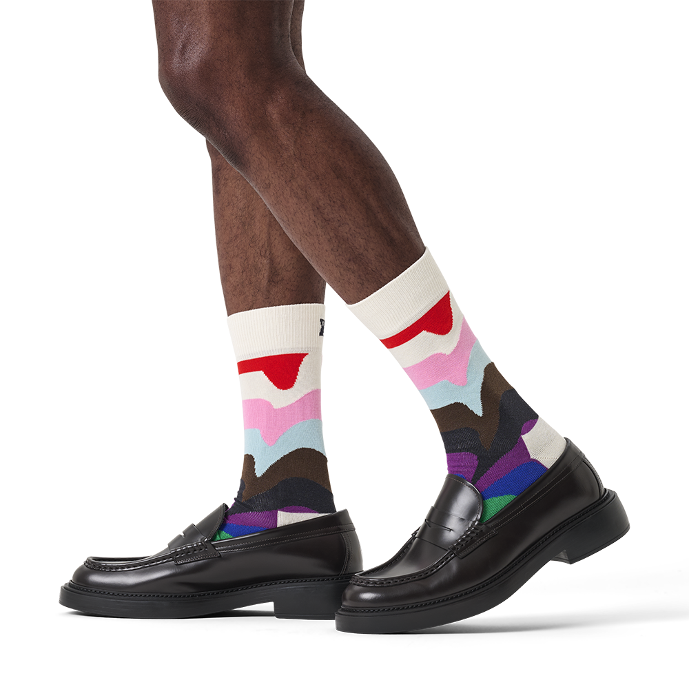 Celebra quién eres con los calcetines Pride Liquid Stripe: color, actitud y pura energía en cada paso. Su estampado de ondas líquidas en los colores de la bandera inclusiva del Orgullo no deja lugar para pasar desapercibidx. Aquí la autenticidad manda: las rayas vibran, fluyen y se mueven contigo, para que tu personalidad brille al máximo. Perfectos para lucirte en el próximo evento Pride… ¡o para alegrar hasta el día más normal! Un regalo top para aliadxs y fans del colorido espíritu LGBTQ+.