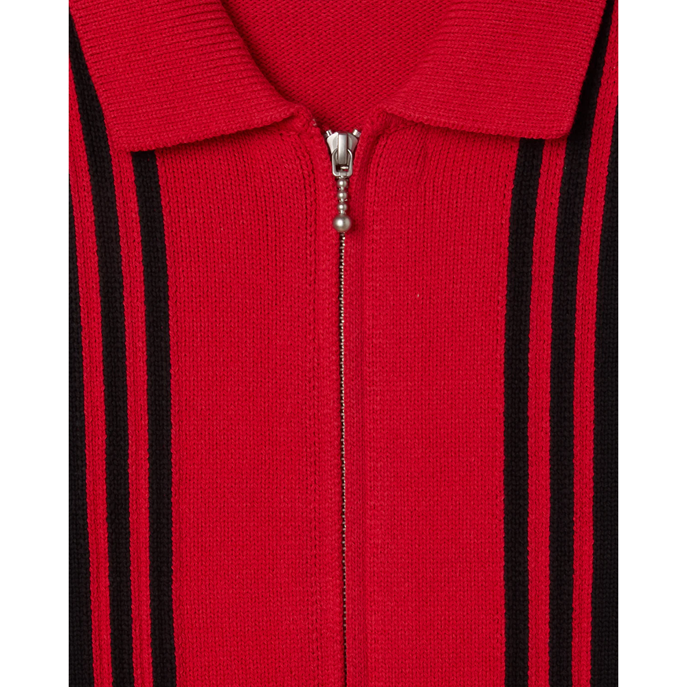 Cárdigan tipo polo de rayas, una prenda versátil que combina estilo clásico y actitud contemporánea.